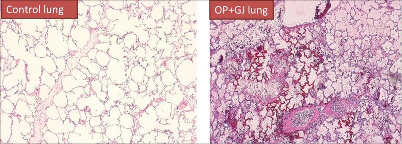 Aspiration of OP and GJ causes pulmonary neutrophil sequestration, alveolar haemorrhage, interstitial oedema, and disruption of the alveolar-capillary membrane (figure 1).